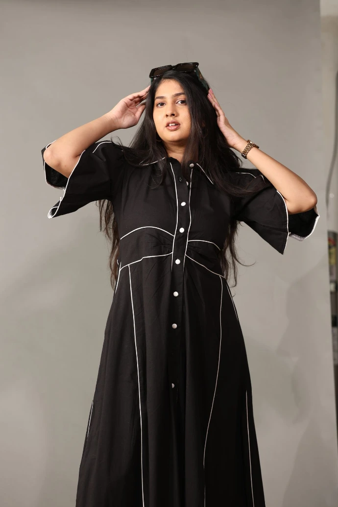 Sleek black elegance meets delicate white detailing, creating a timeless statement of effortless sophistication.